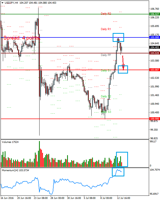 Цена находится выше уровня разворота PIVOT 104.02. Объемы перед открытием