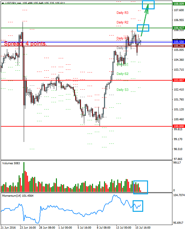 Цена находится выше уровня разворота PIVOT 105.24. Объемы перед открытием