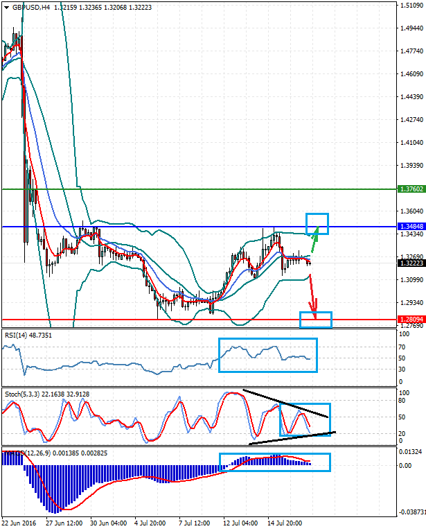GBPUSD Новостной фон: Пара консолидируется в диапазоне 1.2810-1.3485 в ожидании публикации сегодня данных по потребительской инфляции в Британии. Если данные окажутся выше прогнозов это подтолкнет пару вверх к верхней границе диапазона. В тоже время снижение инфляции приведет к падению цены, а сохранение данных на прежнем уровне, вероятно, не окажет какого-либо существенного влияния. Техническая картина: Цена находится ниже средней линии границ полос Боллинджера, ниже ЕМА 5 и ЕМА 13. RSI расположен ниже уровня в 50% и движется горизонтально. Стохастики пока снижаются, но постепенно сживаются в треугольник. MACD выше нулевой и плавно снижается. Индикаторы не подтверждают друг друга.